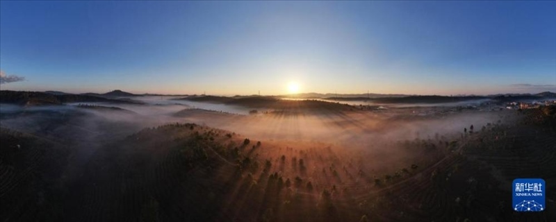 1月1日,云南省景洪市萬畝茶園沐浴在新年的陽光中。
