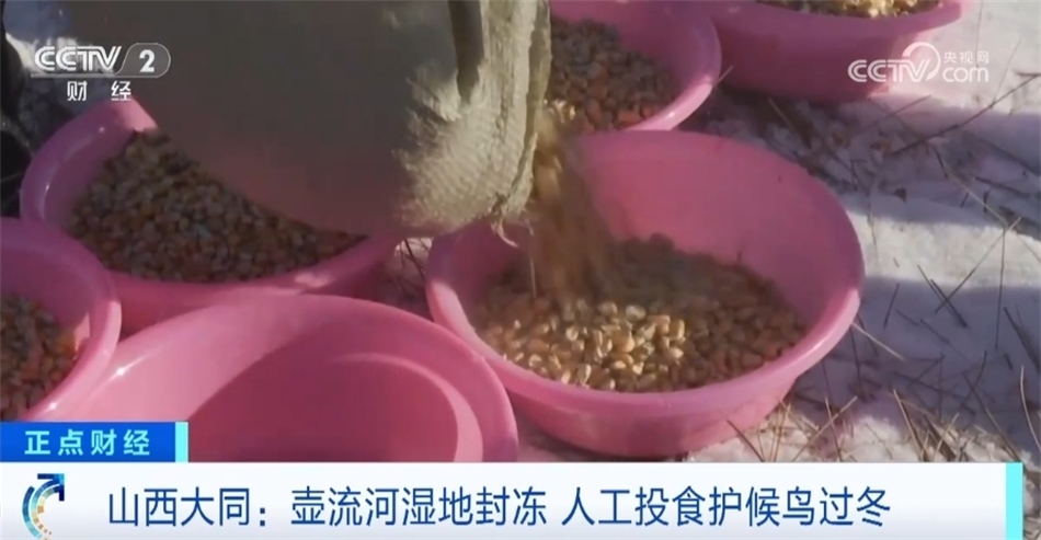 山西大同:壺流河濕地封凍 人工投食護(hù)候鳥(niǎo)過(guò)冬