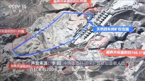 中央生態(tài)環(huán)境保護(hù)督察組督察人員李陽:“越界開采了,合起來有200多畝?!?/p>