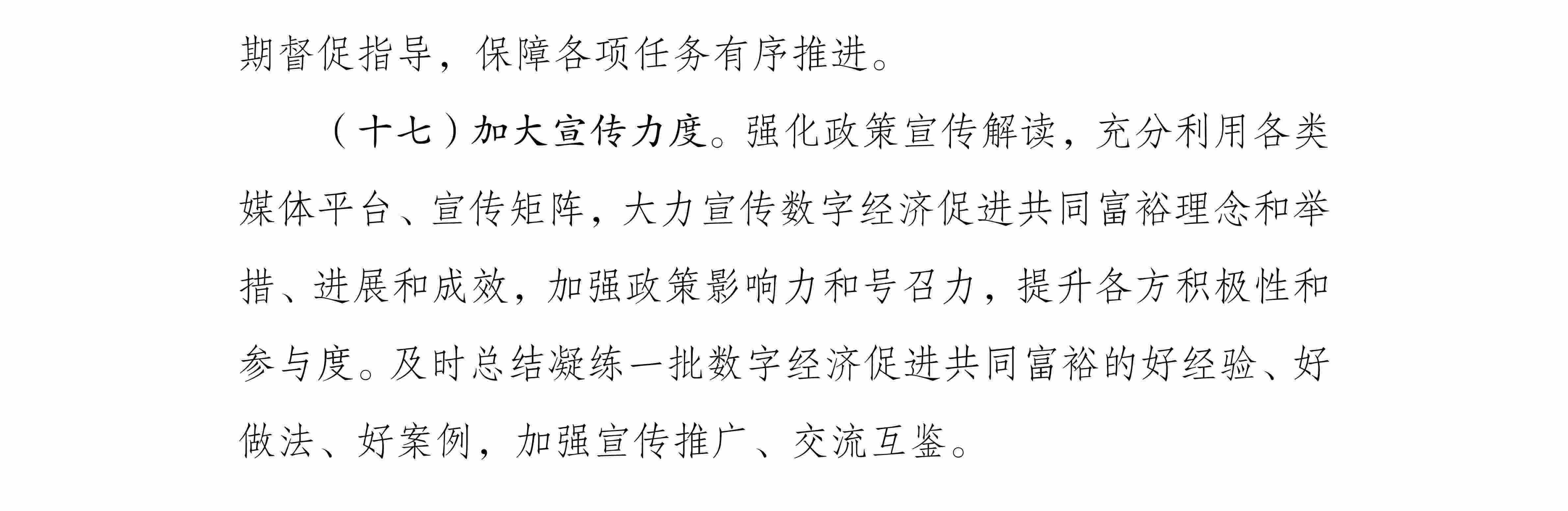 央視網(wǎng)消息:據(jù)國(guó)家發(fā)展改革委、國(guó)家數(shù)據(jù)局,為全面貫徹黨的二十大精神,按照中央經(jīng)濟(jì)工作會(huì)議部署,推動(dòng)數(shù)字技術(shù)和實(shí)體經(jīng)濟(jì)深度融合,不斷做強(qiáng)做優(yōu)做大我國(guó)數(shù)字經(jīng)濟(jì),通過(guò)數(shù)字化手段促進(jìn)解決發(fā)展不平衡不充分問(wèn)題,推進(jìn)全體人民共享數(shù)字時(shí)代發(fā)展紅利,助力在高質(zhì)量發(fā)展中實(shí)現(xiàn)共同富裕,研究制定了《數(shù)字經(jīng)濟(jì)促進(jìn)共同富裕實(shí)施方案》。
