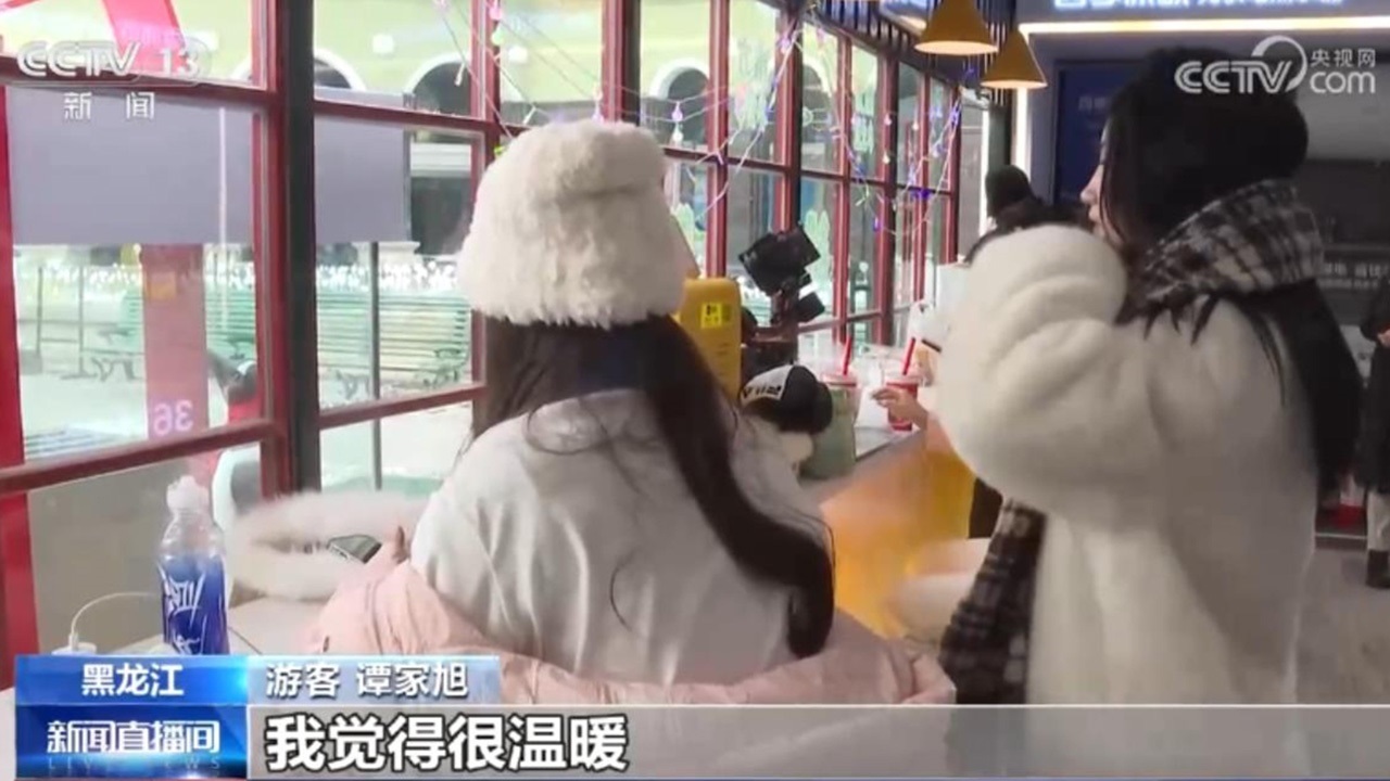 同樣火熱的還有哈爾濱百年老街——中央大街,游客們不僅可以欣賞風(fēng)格各異的建筑,還會被送上溫暖的姜糖水,感受冰城商戶的熱情。