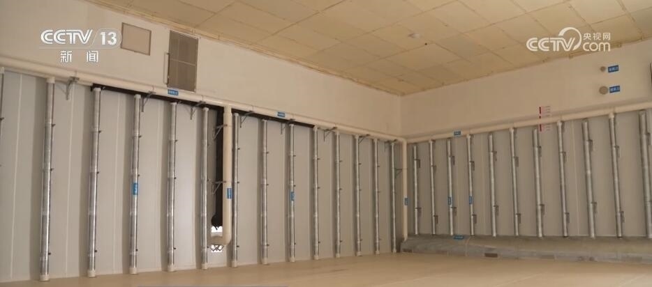 當工作人員打開這座暫時空著的倉庫時,墻壁上的一排排管道十分搶眼。天氣熱的時候,這四面墻的氣道里都會充入冷空氣,再加上頂部的風道,這“五面立體動態(tài)控溫技術(shù)”就相當于給糧倉內(nèi)外加了一道隔離帶,低溫保鮮。