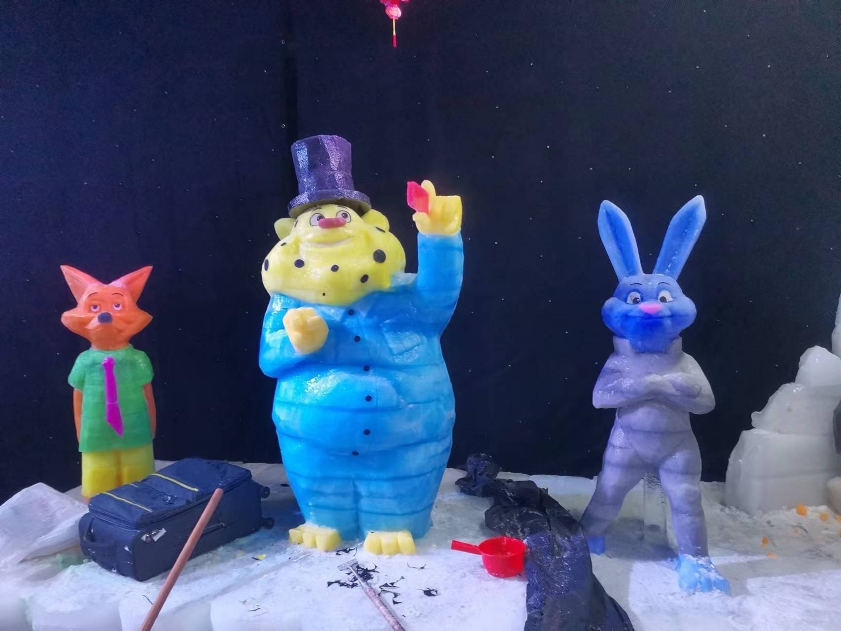 經(jīng)過(guò)一天雕刻即將完成的雪雕