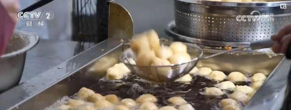 在鹽城市建湖縣的一家魚圓門店里,工人們正在炸制魚圓。分裝、稱重、封口后,不一會(huì)兒工人們就把包裝好的魚圓擺滿了工作臺(tái)。