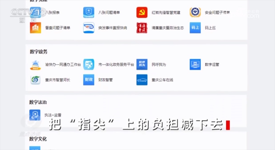 工作重心向基層服務(wù)轉(zhuǎn)變,才能切實看到為基層減負的實效。2021年,重慶市一體化、智能化、數(shù)字化政務(wù)工作平臺“渝快政”正式發(fā)布?!坝蹇煺痹谌蟹秶鷥?nèi)實現(xiàn)了上下層級、橫向跨部門之間的協(xié)同,一個“渝快政”App就可以支持過去40多項高頻次的政務(wù)辦公應(yīng)用,過去各部門App的相應(yīng)功能、各種工作群都整合在了“渝快政”一個App里面。一表通、“141”基層智治平臺也已經(jīng)接入了“渝快政”,正在向全市推廣?,F(xiàn)在,文勇手機里的53個工作群已經(jīng)解散,郝歡手機里十幾個部門App也已經(jīng)被整合到“渝快政”。?