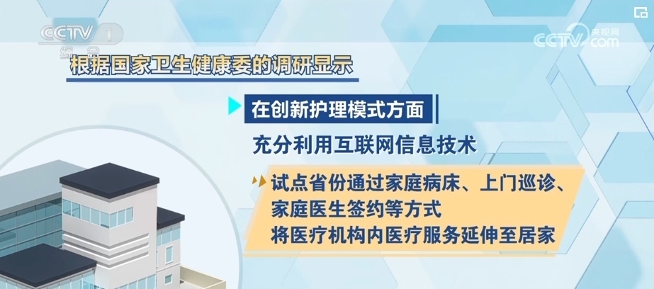 在創(chuàng)新護理模式方面,充分利用互聯(lián)網(wǎng)信息技術(shù),試點省份通過家庭病床、上門巡診、家庭醫(yī)生簽約等方式,將醫(yī)療機構(gòu)內(nèi)醫(yī)療服務延伸至居家。目前,共計有3000多個醫(yī)療機構(gòu),可以上門為居家老年人提供7大類60多項醫(yī)療護理服務項目,減輕了患者和家屬的負擔。