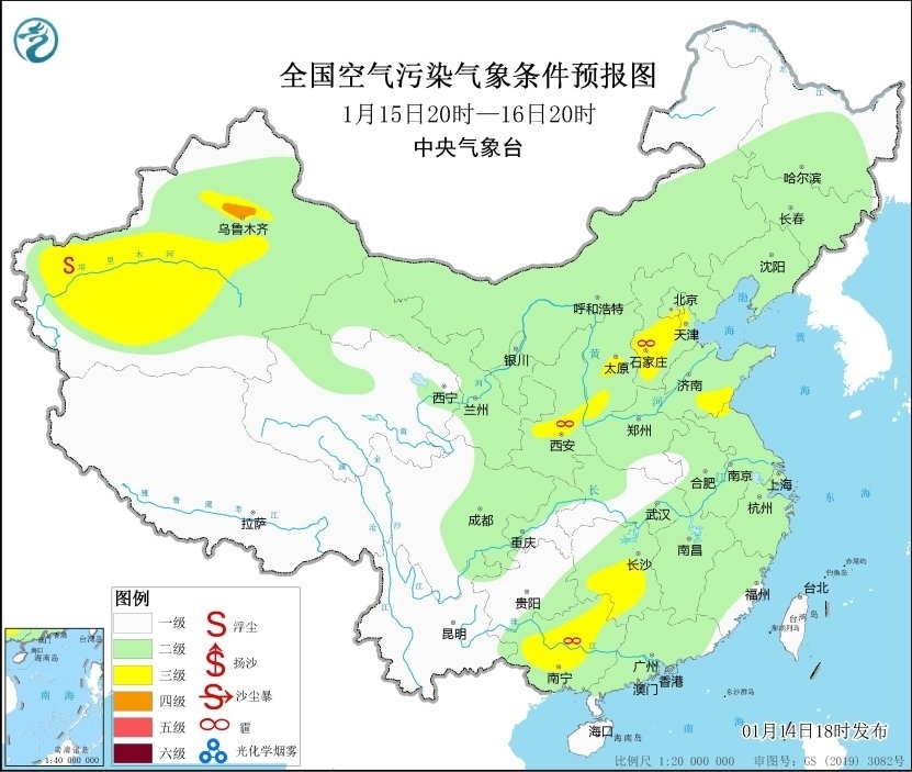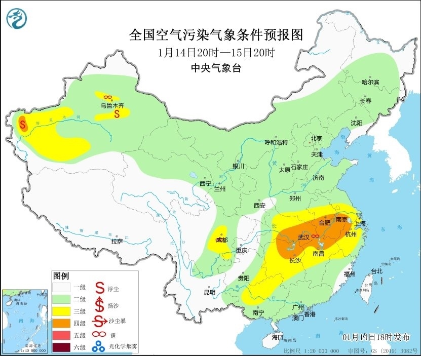 14日夜間至15日白天,受上游污染物傳輸影響,湖北、湖南、江西中北部等地有短時輕至中度霾。15日夜間起,受冷空氣和降水影響,區(qū)域大氣擴(kuò)散條件逐漸好轉(zhuǎn)。