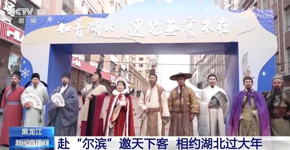 這些天,一群來自湖北的特殊游客抵達黑龍江哈爾濱,開啟他們的冰雪之旅。他們是湖北省文化和旅游廳組織扮演的“歷史名人天團”,既有屈原、伯牙子期等,也有李白、蘇東坡等曾在湖北留下著名詩篇的文人。他們在中央大街聚首,“拼”詩詞展音律,傳遞傳統(tǒng)文化之美。在暢享北國風光的同時,也為游客們送上一場超級文旅秀和文旅大禮包,邀請全國游客“去湖北過大年”。
