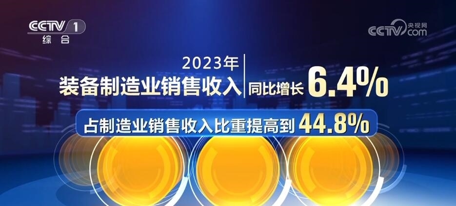 高端制造業(yè)發(fā)展持續(xù)向好,裝備制造業(yè)銷售收入同比增長(zhǎng)6.4%,占制造業(yè)銷售收入比重提高到44.8%。其中,電動(dòng)載人汽車、鋰離子蓄電池、太陽能電池“新三樣”產(chǎn)品相關(guān)行業(yè)銷售收入合計(jì)同比增長(zhǎng)超過五分之一。