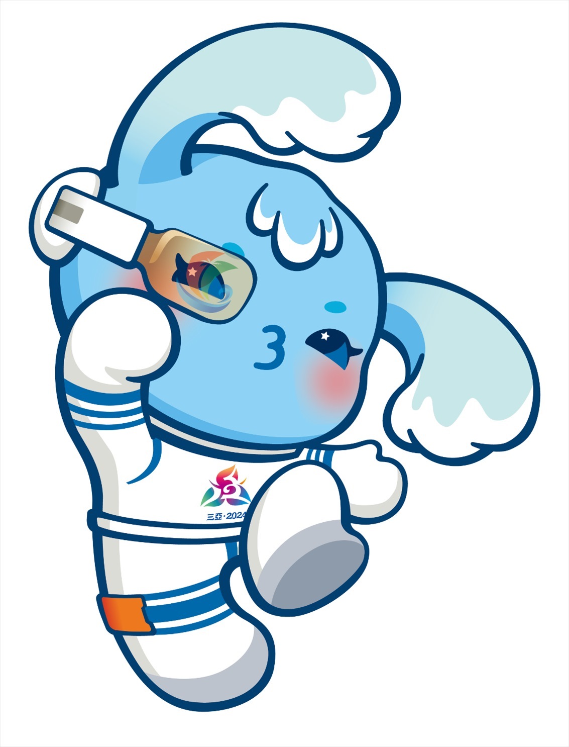 吉祥物由清華大學(xué)美術(shù)學(xué)院團(tuán)隊(duì)創(chuàng)作完成。吉祥物“吉貝”是一只海精靈,名字取自《尚書·禹貢》和蘇東坡的詩(shī)詞,在歷史上專指“黎錦”這一中華民族優(yōu)秀傳統(tǒng)文化的典型代表,黎錦也是世界級(jí)非物質(zhì)文化遺產(chǎn),同時(shí)“吉貝”也有“吉祥寶貝”的意思;海精靈身著宇航服,寓意星辰大海,佩戴的AI智能眼鏡中映射出海南自由貿(mào)易港的標(biāo)志,寓意科技與現(xiàn)代化。海精靈展現(xiàn)了中華民族團(tuán)結(jié)奮斗、揚(yáng)帆征程,攜手邁向中國(guó)式現(xiàn)代化的精氣神。