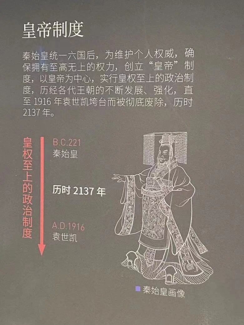 陜歷博秦漢館中的展板標明皇帝制度結(jié)束于“袁世凱”。圖源:“今西安”微信公眾號