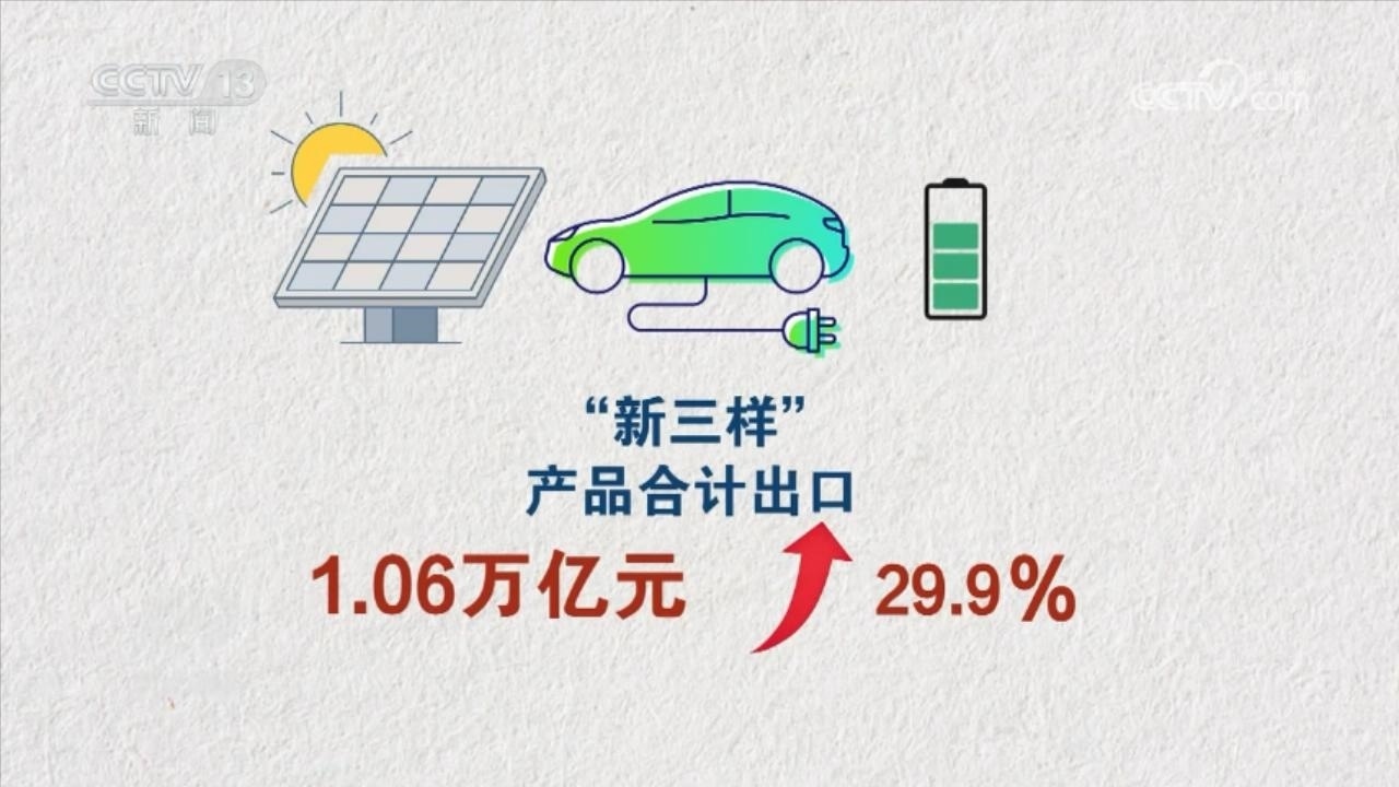 2023年,我國(guó)出口機(jī)電產(chǎn)品13.92萬億元,增長(zhǎng)了2.9%,占出口總值的58.6%;同期勞動(dòng)密集型產(chǎn)品出口4.11萬億元,占出口總值的17.3%。機(jī)電產(chǎn)品中,電動(dòng)載人汽車、鋰離子蓄電池及太陽(yáng)能電池“新三樣”產(chǎn)品合計(jì)出口1.06萬億元,首次突破萬億元大關(guān),增長(zhǎng)了29.9%。船舶、家用電器的出口分別增長(zhǎng)35.4%和9.9%。