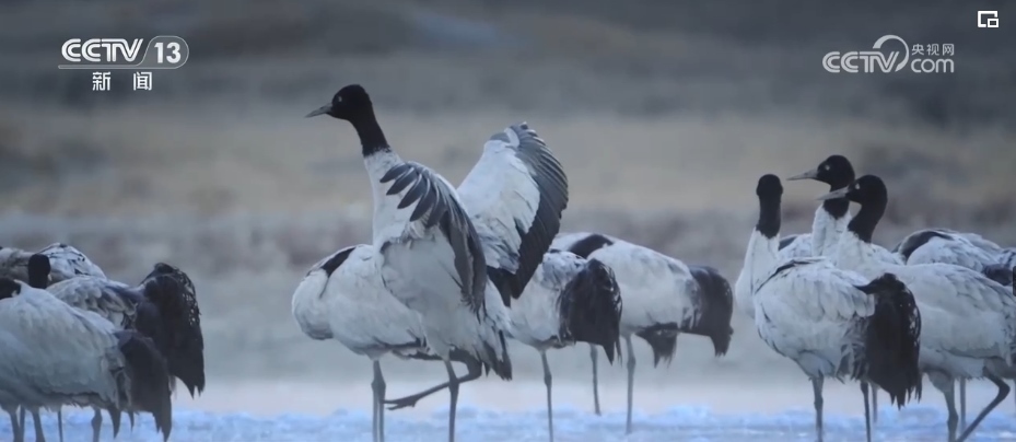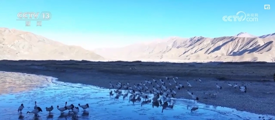 西藏的越冬水鳥主要有黑頸鶴、斑頭雁、赤麻鴨等。監(jiān)測隊設(shè)立了505個觀測點(diǎn),共記錄調(diào)查軌跡數(shù)407條,觀測到水鳥45種。其中,包括兩種國家一級保護(hù)動物,分別是黑頸鶴和白尾海雕。7種國家二級保護(hù)動物,分別是灰鶴、鴛鴦、白額雁、斑頭秋沙鴨、黑頸鸊鷉、角鸊鷉、花臉鴨。還有重要生態(tài)、科學(xué)、社會價值的陸生野生動物36種。