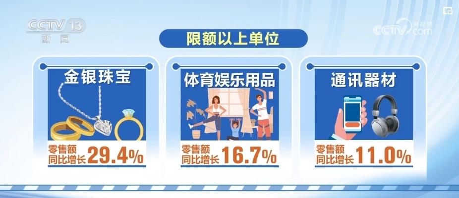 2023年12月,社會(huì)消費(fèi)品零售總額4.36萬(wàn)億元,同比增長(zhǎng)7.4%。其中,商品銷(xiāo)售穩(wěn)步增長(zhǎng),升級(jí)類(lèi)商品消費(fèi)需求增長(zhǎng)明顯。商品零售額同比增長(zhǎng)4.8%,限額以上單位金銀珠寶、體育娛樂(lè)用品、通訊器材零售額同比分別增長(zhǎng)了29.4%、16.7%和11.0%。