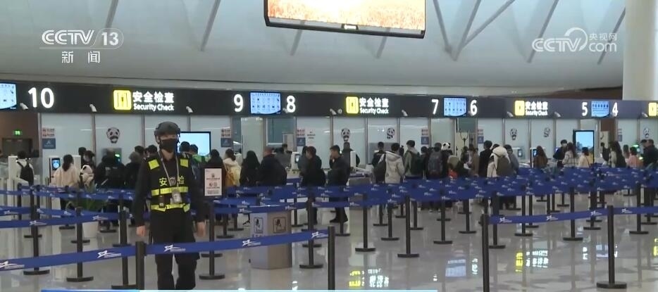 在成都天府機(jī)場,客運(yùn)員楊藝正在值機(jī)柜臺前忙碌地幫旅客進(jìn)行驗(yàn)證、出票、托運(yùn)等一系列操作,不到1分鐘,旅客的手續(xù)就辦好了。