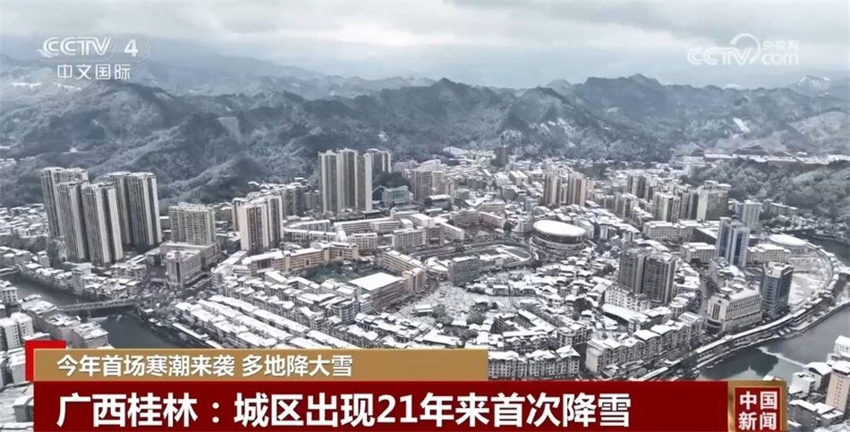從21日到22日,廣西桂林市自北向南出現了一次大范圍的降雪天氣過程,桂林市城區(qū)更是出現21年來的首場降雪。