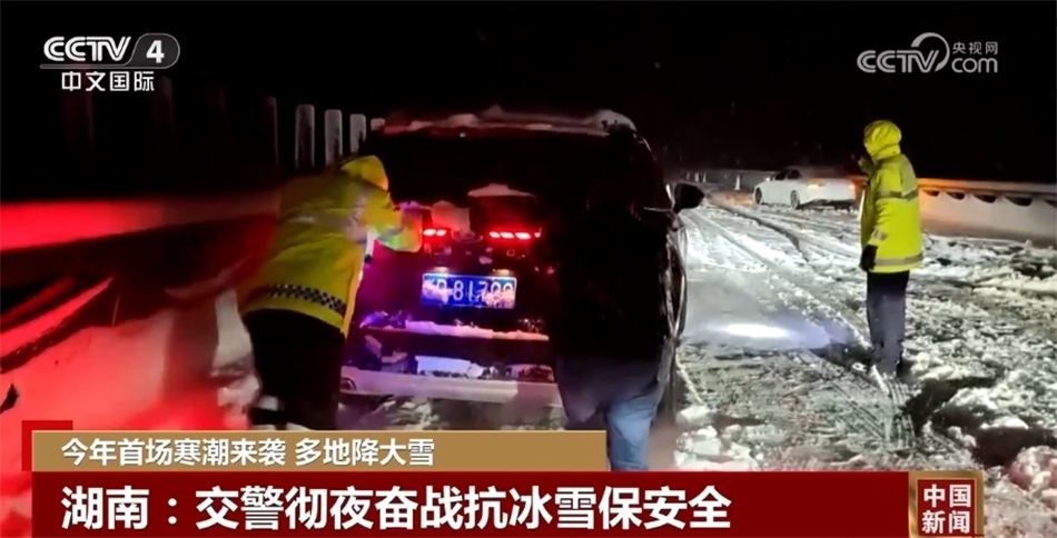 湖南西部、北部以及部分高海拔山區(qū)出現大雪,湖南交警徹夜奮戰(zhàn)抗冰雪,及時排除險情,全力以赴保證公路安全暢通。在長芷高速,因上坡路段積雪較深,部分小型汽車被困無法前行,婁底高速警察聯(lián)合司乘人員將百余臺車輛逐一推上坡道。
