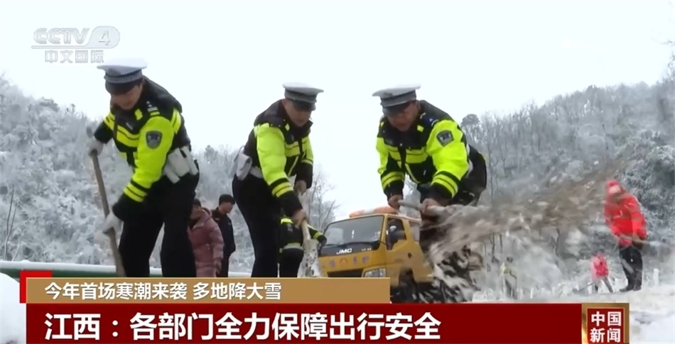 從21日開始,江西各地迎來了今年首場大范圍降雪天氣。德安縣迅速啟動惡劣天氣應急預案,加強重點路口、路段的交通秩序管控。在梅嶺風景區(qū),因為大雪、路面出現結冰,當地采取“限時、限路、限流”的工作措施,對景區(qū)道路適時實施交通管制,保障游客出行游玩安全。在九江市武寧縣,工作人員清理倒伏的樹枝、撒融雪劑、鏟冰除雪、疏導交通,為過往的司機提供幫助。