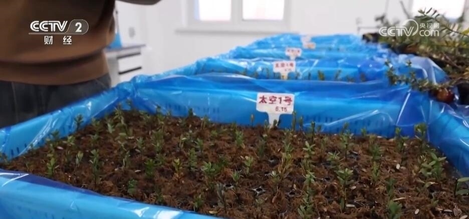 總臺記者 張程:在我身邊的這些蔓越莓苗,就是在2022年的6月5號,跟隨神舟14號飛船上天之后,又返回地球的蔓越莓種苗,現(xiàn)在已經(jīng)是破土而出。蔓越莓種植時間比較長,三年掛果,五年才能夠進入到豐產(chǎn)期。而我們在這邊看到的就是2015年的種苗,現(xiàn)在正好處在盛果期,這個果子形如瑪瑙、色澤鮮亮。