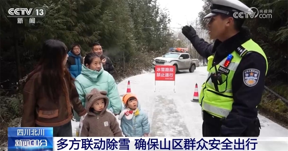 四川綿陽北川羌族自治縣近日迎來低溫降雪天氣,山區(qū)路段大范圍降雪和道路結(jié)冰現(xiàn)象明顯,為確保群眾往返交通順暢安全,當(dāng)?shù)毓膊块T組織基層民警在重要路口設(shè)卡執(zhí)勤,維護(hù)交通秩序。交警在各路段有序開展除雪防滑作業(yè),清掃路面積雪和冰塊。