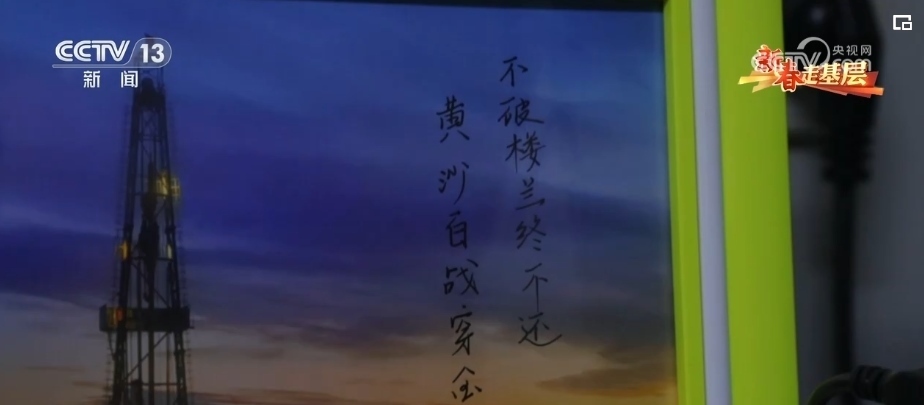 中國石油青海油田柴平12井鉆井隊長 李偉:(當時)看周邊的環(huán)境比較荒涼,有感而發(fā)寫了一句“黃沙百戰(zhàn)穿金甲,不破樓蘭終不還”,也算給自己設立一個目標,什么時候完鉆,什么時候回家。