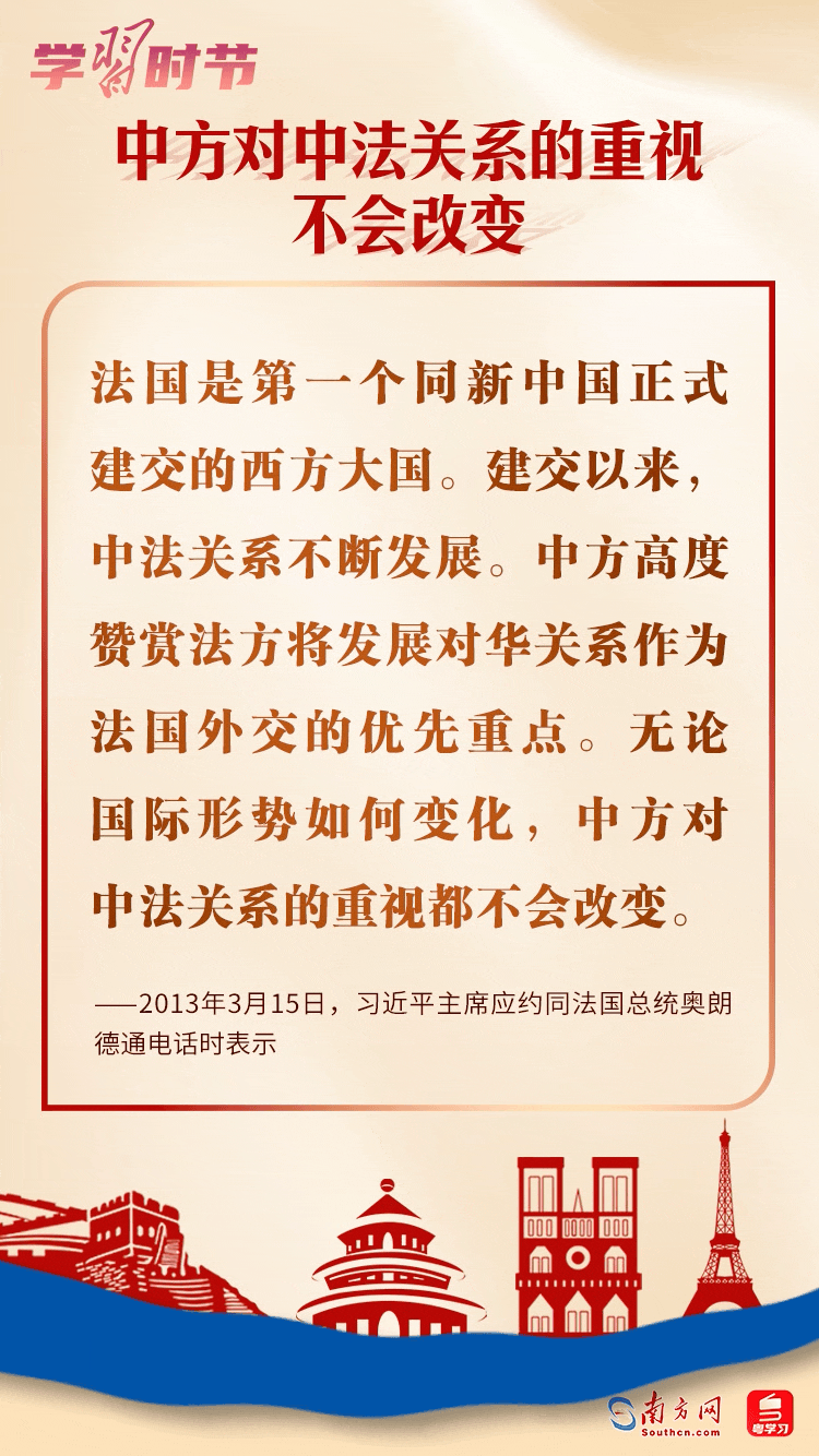 習(xí)近平主席一向高度重視中法關(guān)系發(fā)展,在許多場合作出重要論述,讓我們一起學(xué)習(xí)。