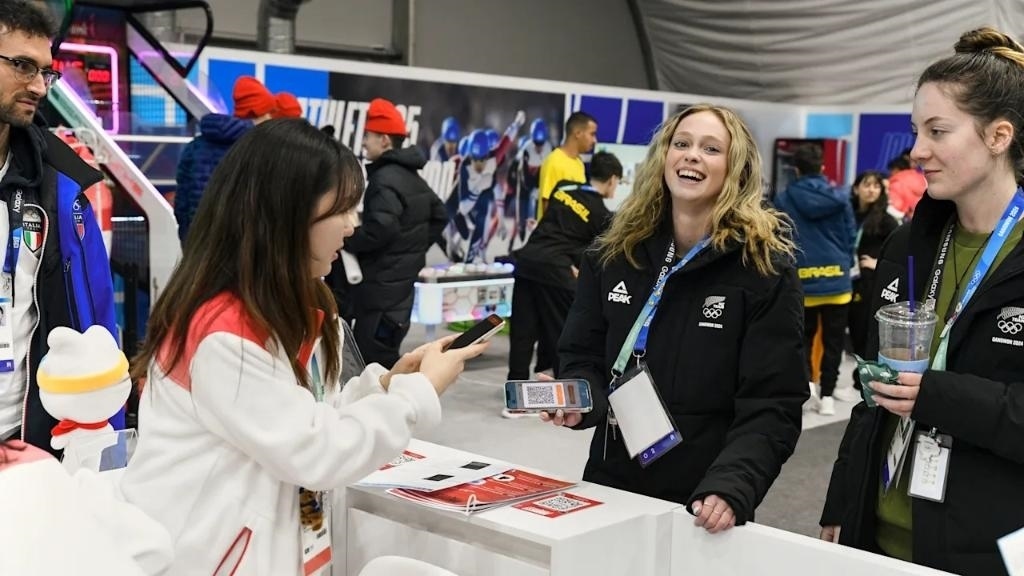 運動員們在冬青奧村“運動員365”體驗區(qū)中。圖片來自國際奧委會官網(wǎng)