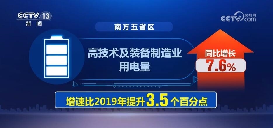 而在南方電網(wǎng)經(jīng)營區(qū)域內的廣東、廣西等五省區(qū),高技術及裝備制造業(yè)用電量同比增長7.6%,增速比2019年提升3.5個百分點,反映工業(yè)經(jīng)濟轉型升級態(tài)勢加快。