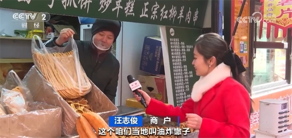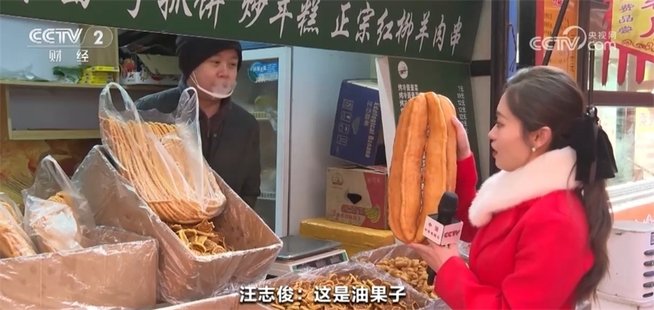 總臺記者 馬雅慧:今天一來到這里我就聞到了濃濃的香料味兒,大家看我身旁的這些都是青海特色的油炸年饃,當地人也叫油炸果子。老板,我看這里款式各式各樣的都有,您能給我們介紹一下嗎?