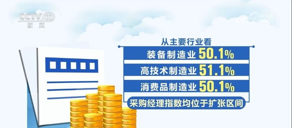 1月份,21個制造業(yè)行業(yè)中有13個行業(yè)采購經(jīng)理指數(shù)環(huán)比上升,1個行業(yè)環(huán)比持平。從主要行業(yè)看,裝備制造業(yè)50.1%、高技術(shù)制造業(yè)51.1%、消費品制造業(yè)50.1%,采購經(jīng)理指數(shù)均位于擴張區(qū)間。