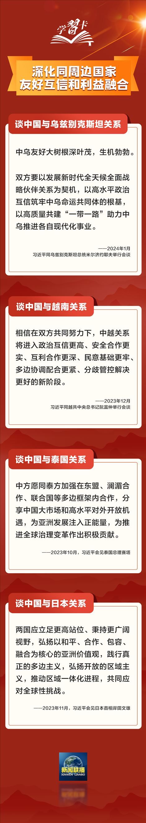 推動(dòng)構(gòu)建新型國(guó)際關(guān)系,打造覆蓋全球的“朋友圈”,習(xí)近平主席在多場(chǎng)外事會(huì)見(jiàn)中提出鮮明主張,一起學(xué)習(xí)↓↓↓