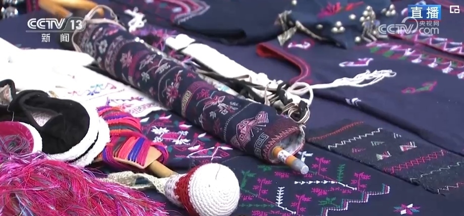 “過(guò)春節(jié),穿新衣。”民族刺繡一針一線繡出來(lái)了山川湖海、日月繁星,不僅有帽子、衣服,還能做成杯墊、雨傘等,搭配起來(lái)都很好看。