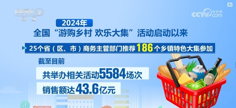 記者從商務(wù)部獲悉,2024年全國“游購鄉(xiāng)村 歡樂大集”活動(dòng)啟動(dòng)以來,25個(gè)省(區(qū)、市)商務(wù)主管部門推薦186個(gè)鄉(xiāng)鎮(zhèn)特色大集參加。截至目前,共舉辦相關(guān)活動(dòng)5584場次,銷售額達(dá)43.6億元。