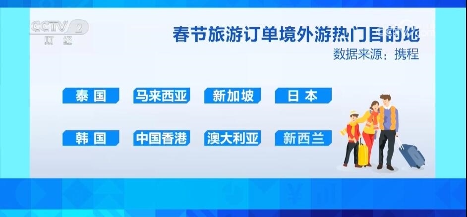 數(shù)據(jù)顯示,春節(jié)期間,國(guó)內(nèi)前十熱門目的地為北京、上海、廣州、深圳、哈爾濱、成都、西安、杭州、三亞、昆明。出境游方面,熱門旅游目的地則包括泰國(guó)、馬來(lái)西亞、新加坡、日本、韓國(guó)、中國(guó)香港、澳大利亞、新西蘭。