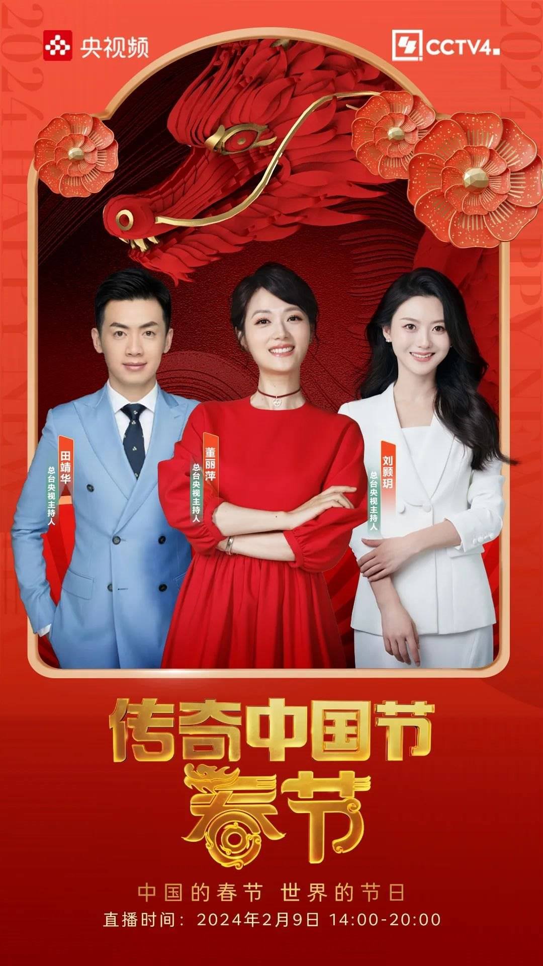 節(jié)目設(shè)置“龍騰四海”、“龍行龘龘”、“龍嘯九州”等板塊,在北京主演播室、融媒體演播室、香港分演播室和春晚直播點(diǎn),CCTV4主持人將與知名嘉賓、多地文旅局長、文化名人、非遺文化傳承人,以及春晚明星一同品味春節(jié)的魅力、世界的年味!