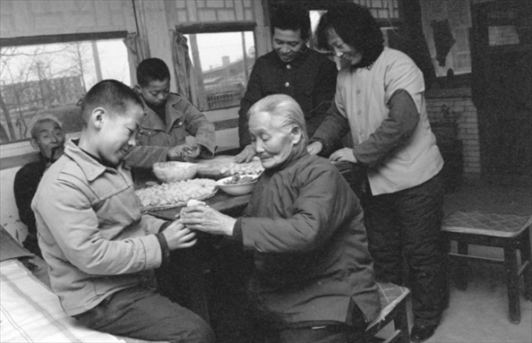 1981年,內蒙古呼倫貝爾牧民高高興興包餃子過春節(jié)。