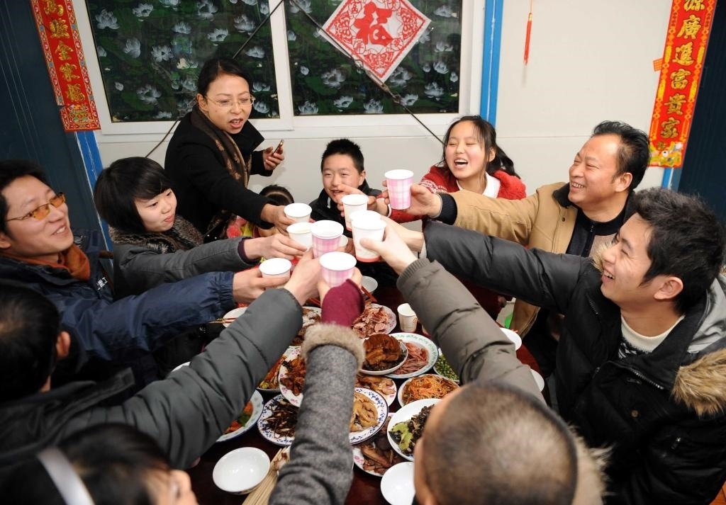 2011年2月2日,浙江諸暨一家公司準備了豐盛的年夜飯,招待800多名沒有回家過年的員工及其家屬,歡聚一堂共迎新年。