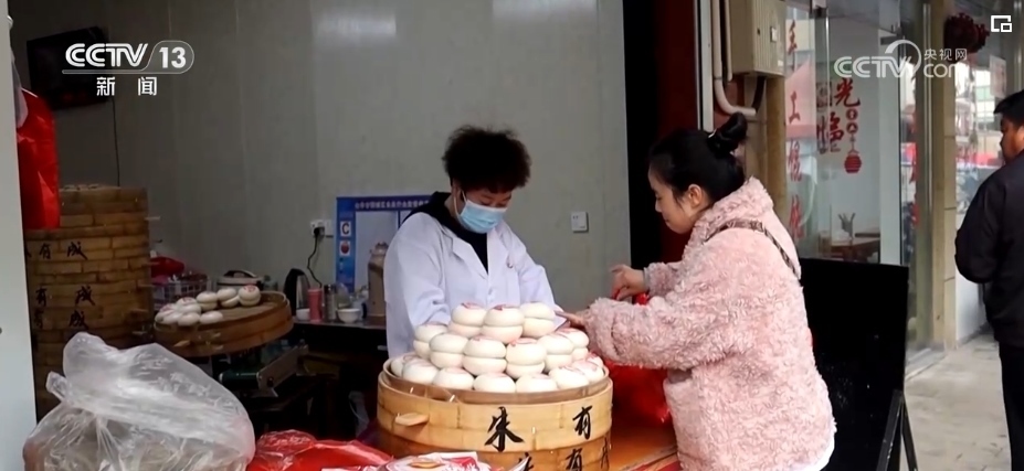 對于當?shù)厝藖碚f,買“紅印饅頭”的日子也就是闔家團聚的日子。一大桌子的年夜飯,“紅印饅頭”是壓軸菜,不少市民專程前來備年貨。