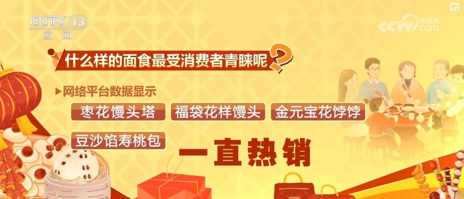 什么樣的面食最受消費者青睞?網(wǎng)絡(luò)平臺數(shù)據(jù)顯示,寓意著步步登高的棗花饅頭塔、福袋花樣饅頭、金元寶花餑餑還有豆沙餡壽桃包一直熱銷。