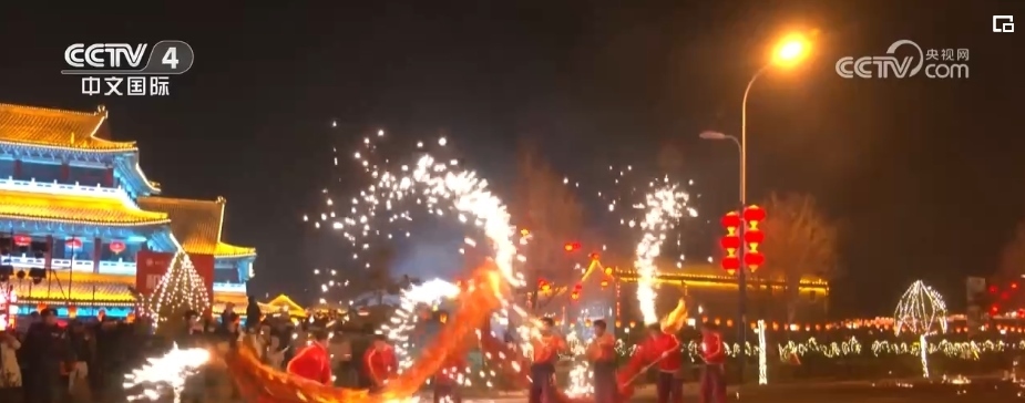 春節(jié)臨近,內(nèi)蒙古烏蘭察布古城新春燈會(huì)也正式開燈。栩栩如生的巨型花燈構(gòu)成璀璨燈海,彩燈與古色古香的建筑交相輝映,形成恢弘壯美、流光溢彩的美麗景象?,F(xiàn)場打鐵花、舞火龍、煙花秀等民俗活動(dòng)輪番上演,令游客流連忘返。