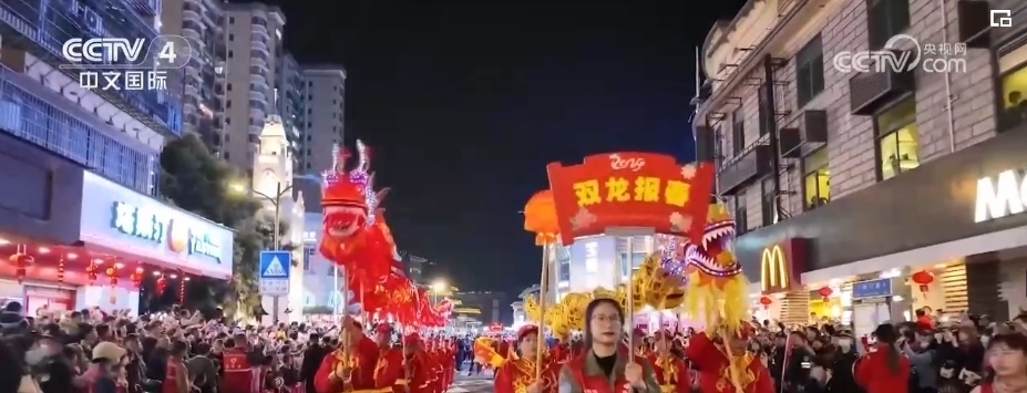 這幾天在廈門同安,盛大的傳統(tǒng)踩街民俗活動(dòng)與古城燈會(huì)同步開啟。舞龍、舞獅、腰鼓隊(duì)等巡游隊(duì)伍從同安城中心出發(fā),表演者們身著盛裝、手持道具,先后經(jīng)過同安鐘樓、同安縣衙舊址等地,與市民游客熱情互動(dòng)。
