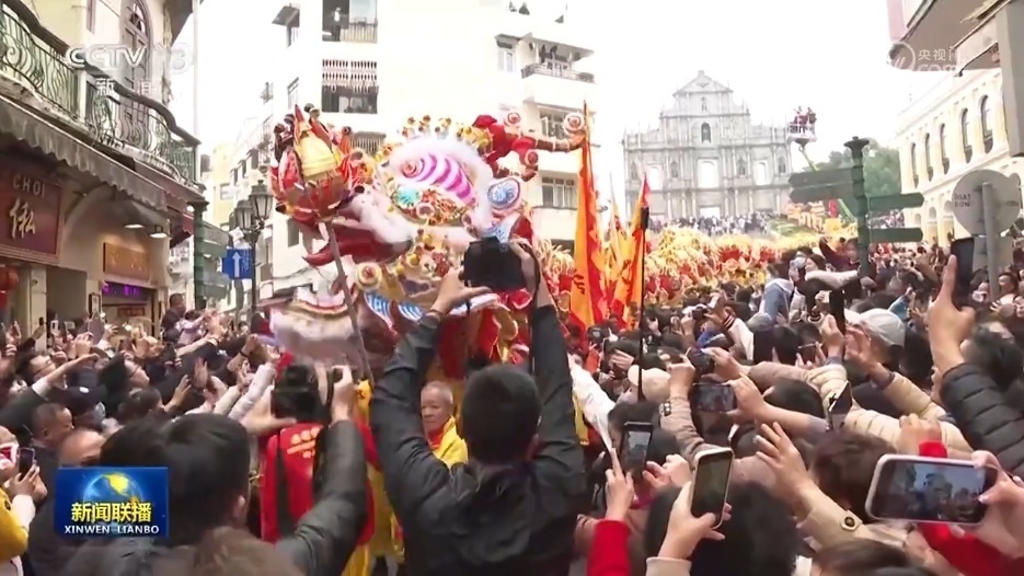 今天,澳門(mén)舉辦“歡樂(lè)春節(jié)——2024年龍騰舞躍賀新春”社區(qū)巡演活動(dòng),一條長(zhǎng)達(dá)238米的金龍和18頭醒獅從大三巴牌坊同時(shí)出發(fā),途經(jīng)澳門(mén)多個(gè)主要景點(diǎn),與眾多市民和游客一起慶祝龍年新春佳節(jié)。