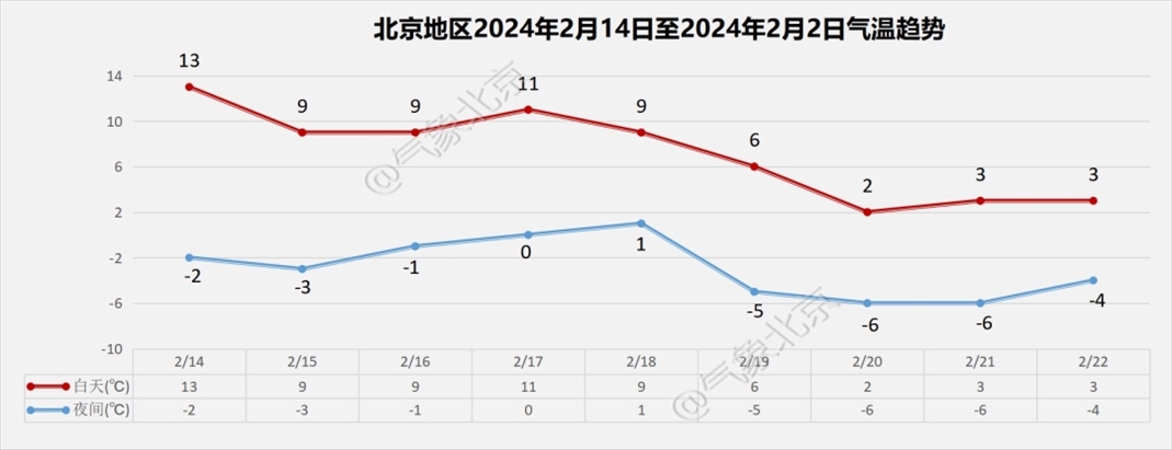 14日夜間:多云轉(zhuǎn)晴;偏北風(fēng)2級;平原地區(qū)最低氣溫-2℃,山區(qū)最低氣溫-7~-4℃。