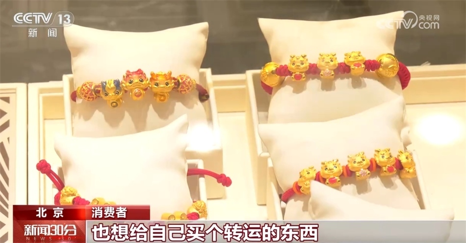 消費者:我今天陪父母看看黃金,今年龍年,也想給自己買個(黃金)轉(zhuǎn)運的東西,能夠在新的一年開開心心、健健康康的。(黃金飾品)樣式非常多,工藝越來越精湛了。