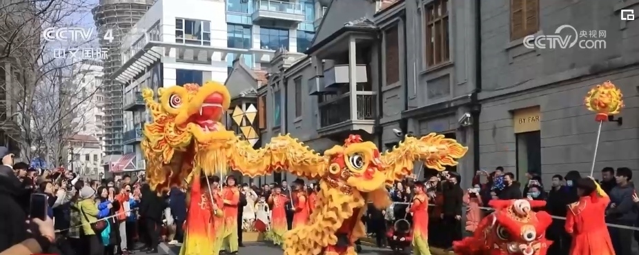 在上海的大街小巷,舞龍舞獅、光影秀等各類新春活動(dòng)陸續(xù)登場(chǎng),讓市民游客感受龍年的歡騰圖景。一大早,隨著鑼鼓聲激昂開(kāi)場(chǎng),一條金龍和兩頭活潑的醒獅在上海市茂名北路威武亮相。龍獅團(tuán)成員們舞動(dòng)一條長(zhǎng)約30米的巨龍?jiān)诮质猩洗┧笥巫?,吸引了不少市民游客駐足觀看。
