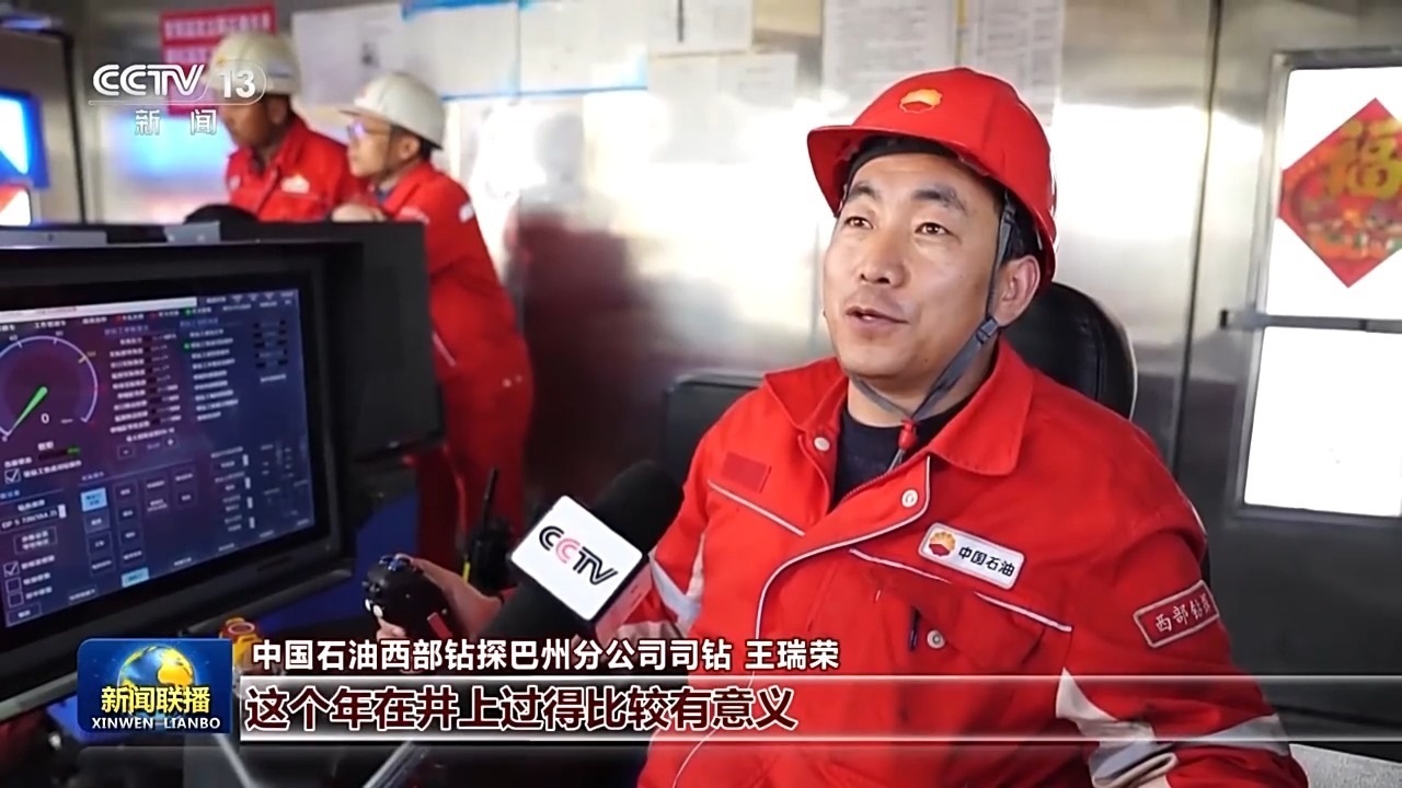 中國石油西部鉆探巴州分公司司鉆 王瑞榮:這個年在井上過得比較有意義,因為每打一米進(jìn)尺就是一個新的亞洲紀(jì)錄在誕生。自己參與到其中,感覺挺自豪的。