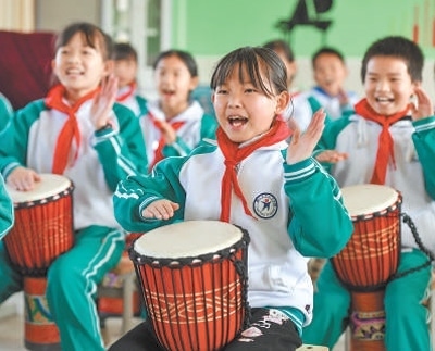 江西省樟樹市義成鎮(zhèn)中心小學(xué)學(xué)生在練習(xí)樂器演奏。目前,我國(guó)基礎(chǔ)教育普及水平總體達(dá)到世界中上行列。周 亮攝(影像中國(guó))