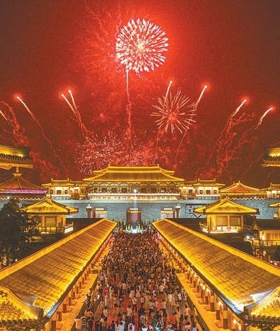 游客們?cè)诤笔∠尻?yáng)市唐城景區(qū)看煙花秀。當(dāng)?shù)嘏e辦的戲曲文化藝術(shù)節(jié)吸引了眾多省內(nèi)外游客前來(lái),拉動(dòng)當(dāng)?shù)芈糜谓?jīng)濟(jì)。據(jù)統(tǒng)計(jì),2023年國(guó)內(nèi)出游人次達(dá)48.91億,國(guó)內(nèi)游客出游總花費(fèi)4.91萬(wàn)億元。楊 東攝(影像中國(guó))