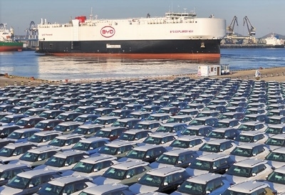 中國(guó)首艘由國(guó)內(nèi)船企建造、專門用于國(guó)產(chǎn)新能源汽車出口的汽車運(yùn)輸船“比亞迪開拓者1號(hào)”搭載新能源汽車從山東煙臺(tái)港啟航。2023年,中國(guó)新能源汽車產(chǎn)銷量均突破900萬(wàn)輛,其中出口120.3萬(wàn)輛,同比增長(zhǎng)77.6%,成為經(jīng)濟(jì)高質(zhì)量發(fā)展中的一抹亮色。唐 克攝(影像中國(guó))