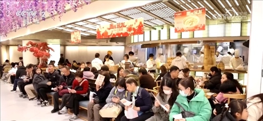 大數(shù)據(jù)顯示,正月初一到初十,全國重點商圈客流量達到8010萬人次,較2023年同期增長81%。涌動的人潮推升住宿餐飲消費。國家稅務總局增值稅發(fā)票數(shù)據(jù)顯示,整個春節(jié)假期,住宿服務日均銷售收入同比增長25.4%,餐飲服務日均銷售收入同比增長31.5%。在江蘇南京,多家美食餐飲“南京首店”引來大批消費者嘗鮮。